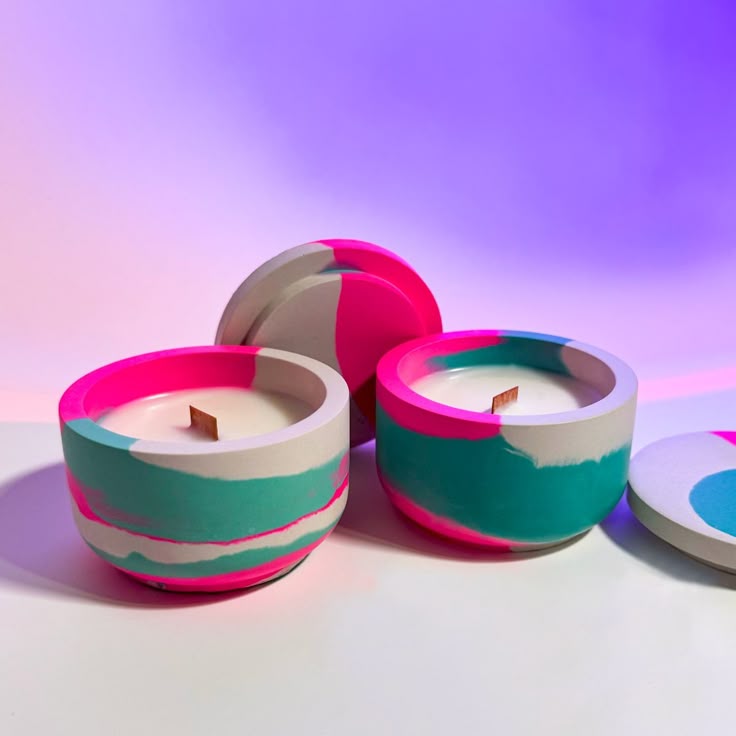 شمع ظرف بتنی نئونی مرمری فتیله چوبی