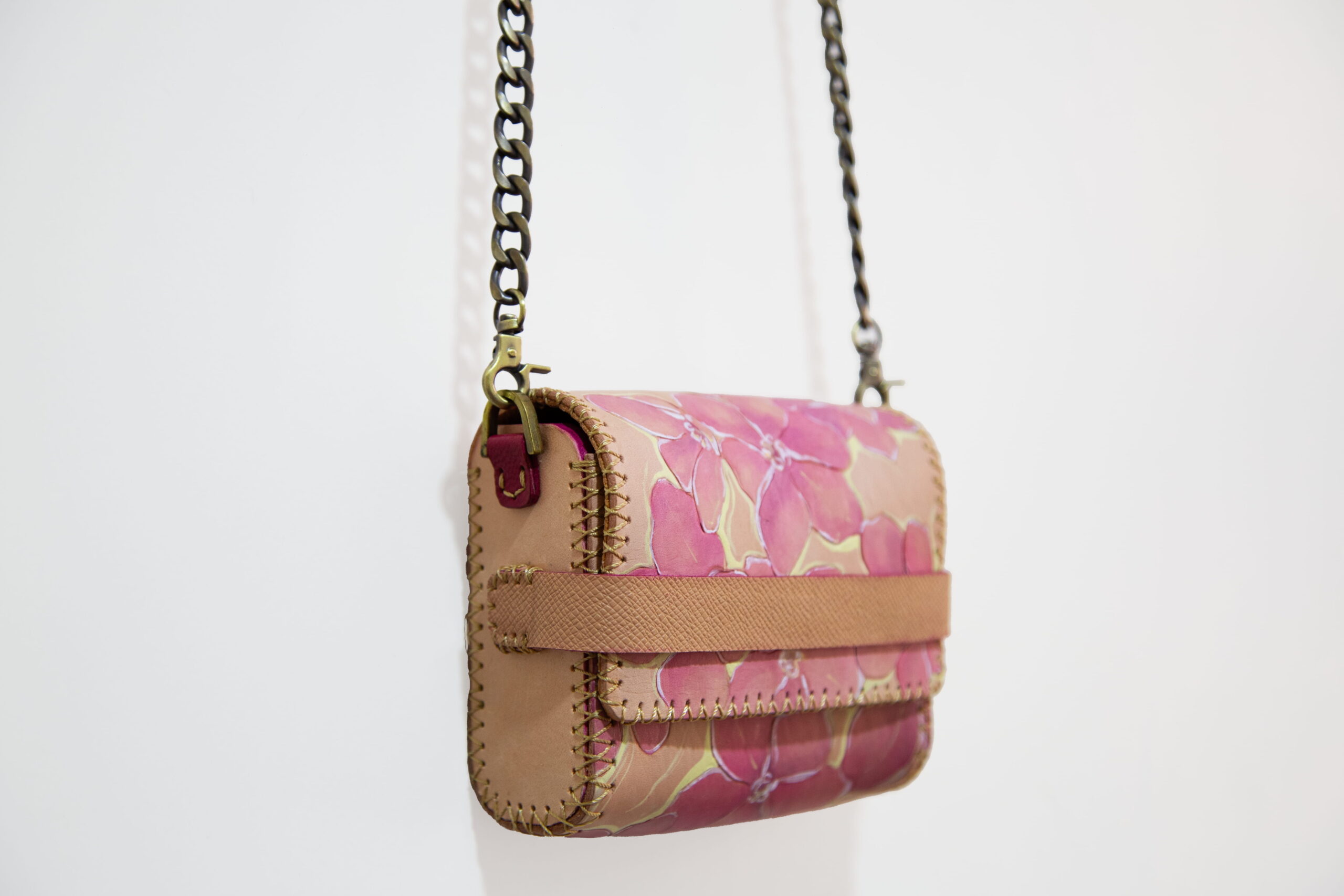 This handmade natural leather bag is crafted from uncolored crust leather with vegetable tanning. It is beautifully colored using ecoline and acrylic paints, showcasing a unique design. The bag features a long metal chain handle, making it easy to carry. The dimensions of the artistic piece are 5*10*13 cm, and it is designed as a perfect accessory for parties, ceremonies, and events, allowing you to showcase a distinctive style. The shipping of this product is based on the customer’s choice through postal services, Tipax, freight, or delivery services, with a shipping time of 3 days. This bag is produced in Tehran and falls under the category of women’s leather bags.